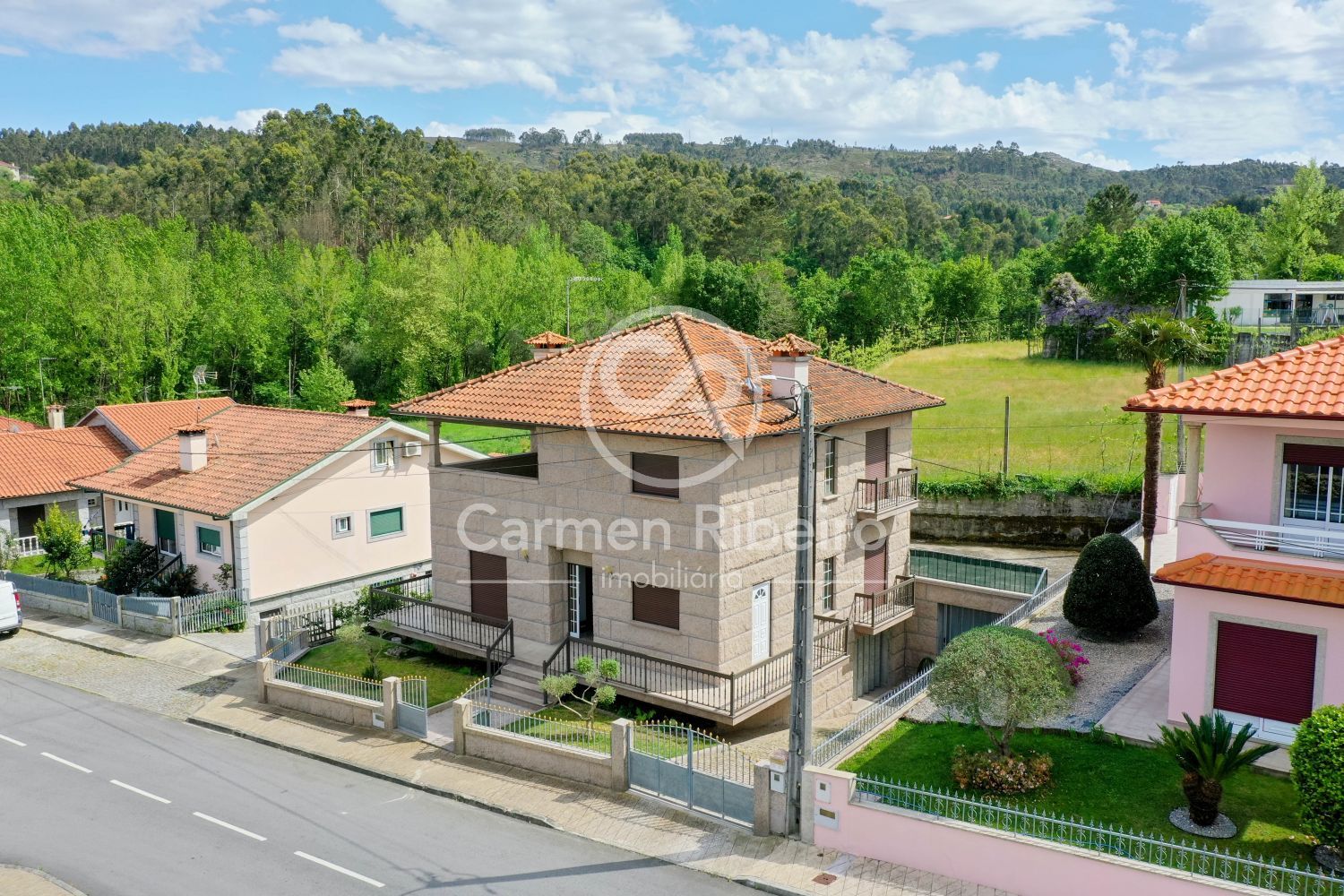 Excelente Moradia T4 toda em pedra situada na Urb.do Passal em S.Gens - FAFE Composta de 3 pisos numa zona residencial e calma a 4kms do centro da cidade. Cave com capacidade para 3 carros, 1 casa de banho completa com base de chuveiro e 1 lavandaria. R/C com sala ampla tendo 2 portas janelas com acesso a varanda e lareira. Cozinha mobilada e equipada, 1 quarto com porta janela com varanda e 1 casa de banho completa com base de chuveiro. 1º piso com 3 quartos, 1 casa de banho completa com banheira. 2 dos quartos partilham um amplo terraço com vistas desafogadas sobre a freguesia. Soalho nos quartos. A casa possui muita luz, pequeno logradouro sobre uma lateral, aquecimento central com caldeira a fuelóleo (mazout). Anexo feito nas traseiras da casa com ampla garagem onde cabem uns 4 carros. Proximidade de escola primária, padaria, café, Junta de Freguesia e Igreja Venha conhecer! Saiba mais e contacte-me